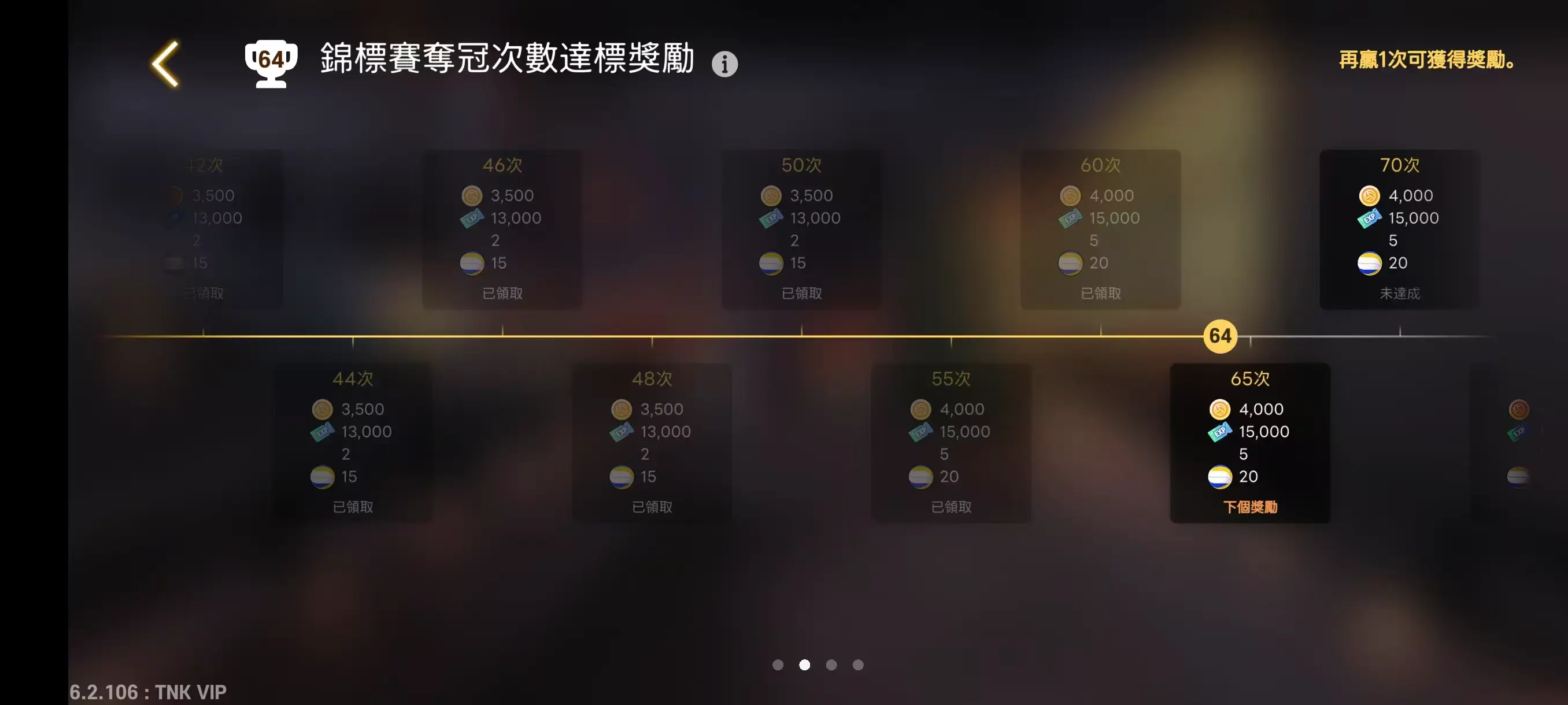 同时拥有累计额外奖励的机制,达到指定冠军累计次数,可获得排球、球芒币、经验值奖励。如下所示: