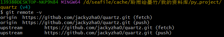 在刚刚的quartz目录下执行git remote -v检查现有的远程库