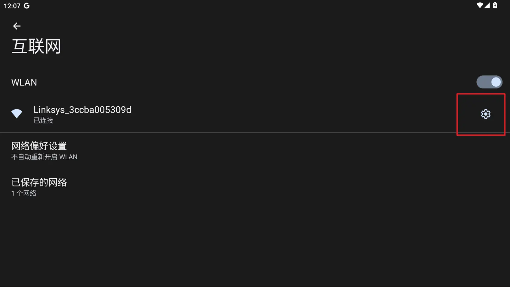 仍然进入设置页面,点击进入最上方的网络和互联网→互联网,然后点击WIFI右侧的设置按钮,如下图所示: