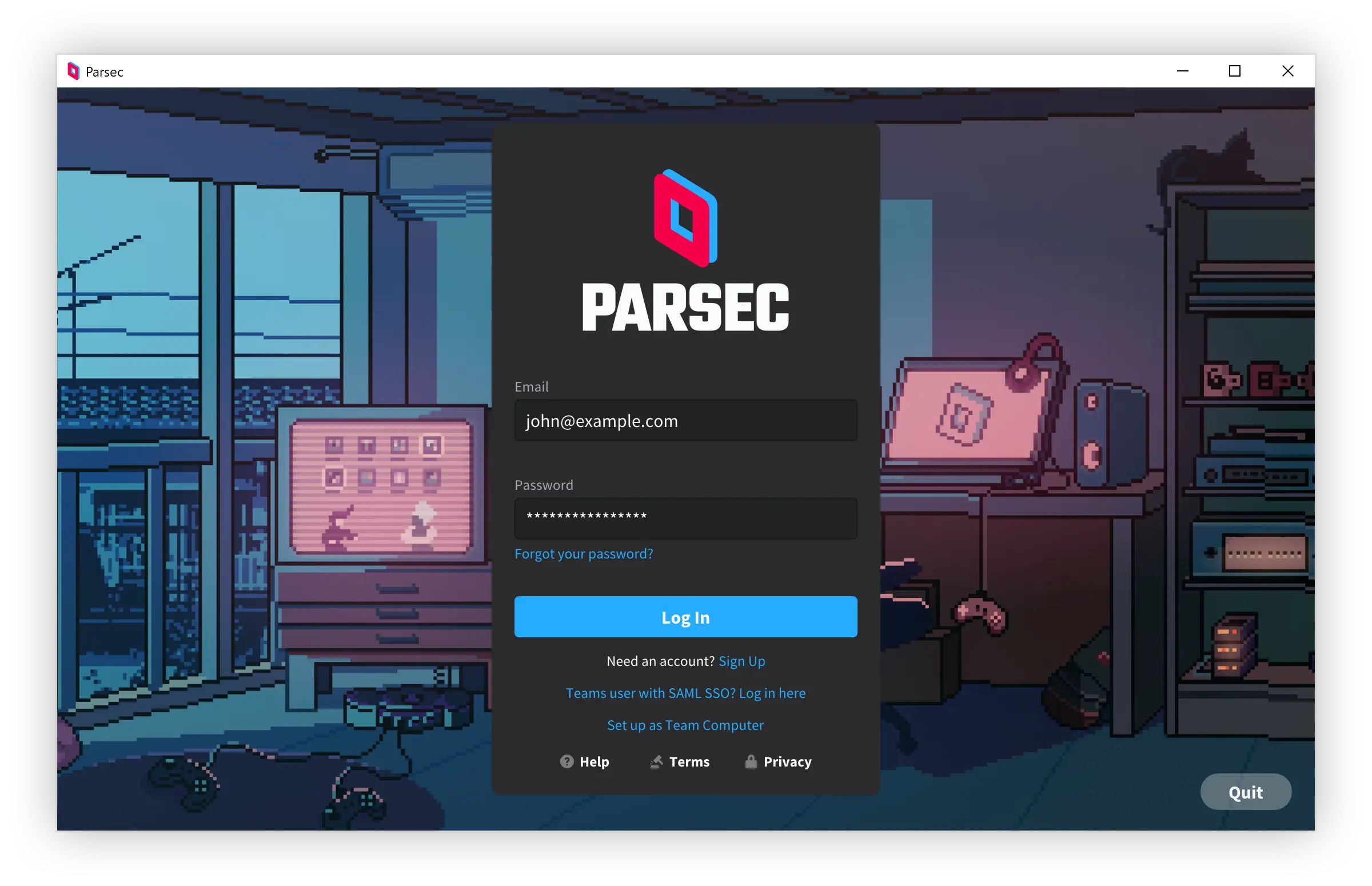 如果你还未在parsec注册账号,请点击我进行注册,然后打开parsec进行登陆